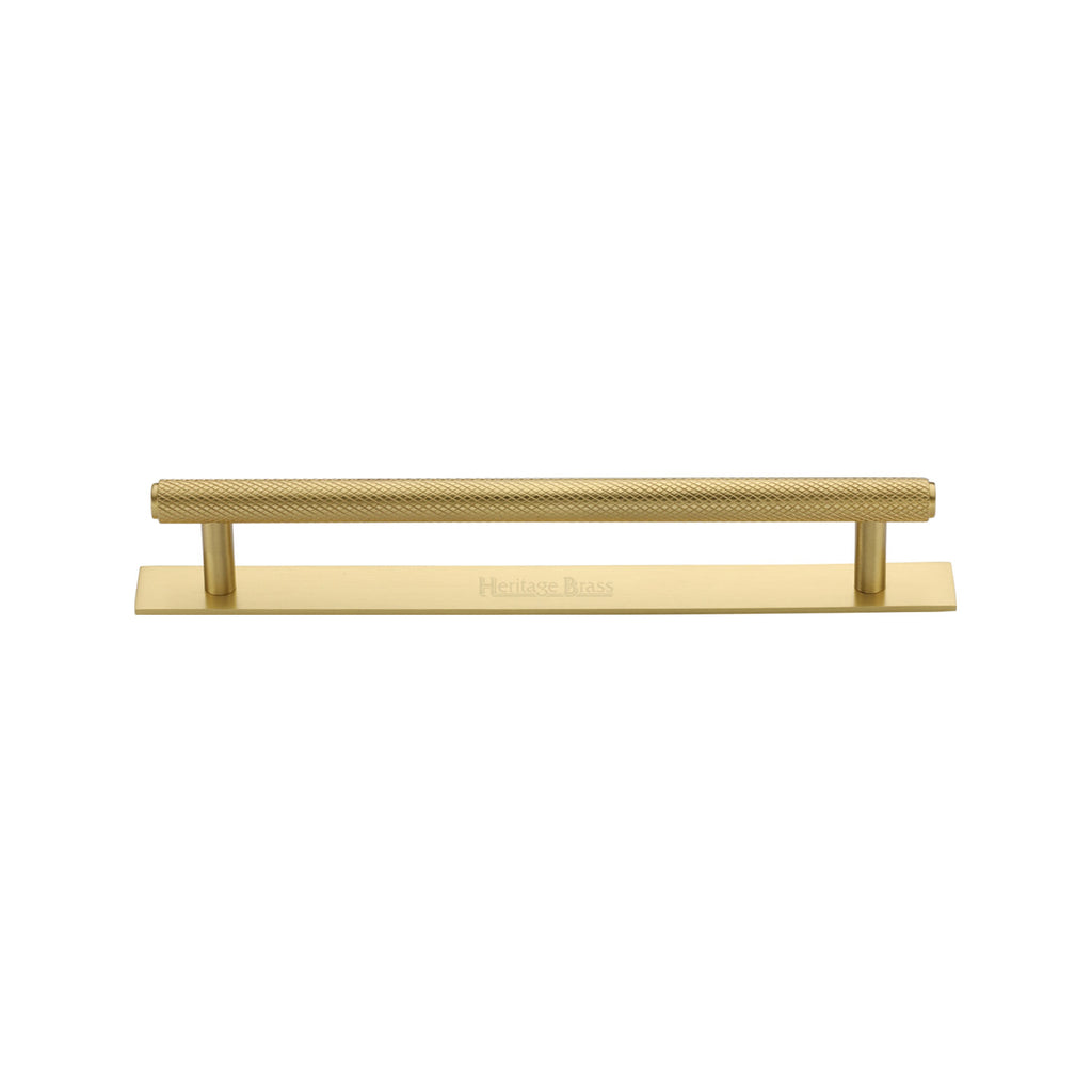 Heritage Brass Cabinet Pull Knurled Design with Plate 128mm CTC Satin Brass Finish - PL4458 128-SB