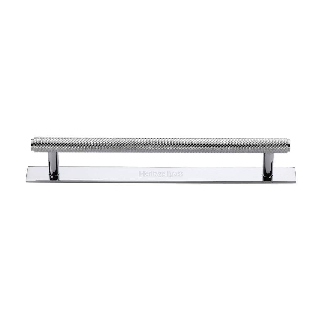 Heritage Brass Cabinet Pull Knurled Design with Plate 160mm CTC Polished Chrome Finish - PL4458 160-PC