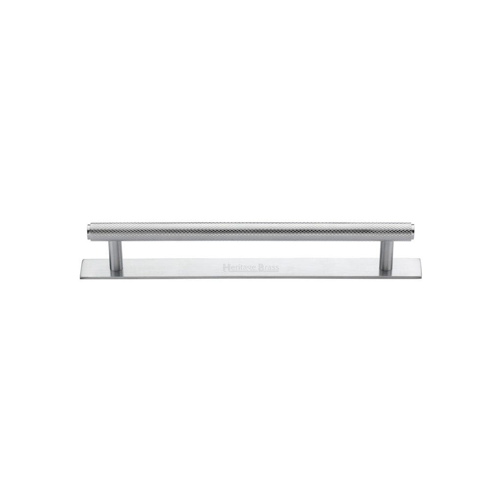 Heritage Brass Cabinet Pull Knurled Design with Plate 96mm CTC Satin Chrome Finish - PL4458 96-SC