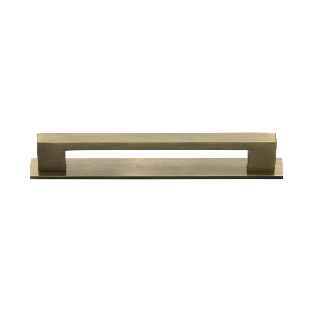 Heritage Brass Cabinet Pull Metro Design with Plate 128mm CTC Antique Brass Finish - PL0337 128-AT