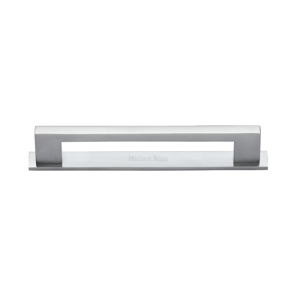 Heritage Brass Cabinet Pull Metro Design with Plate 128mm CTC Satin Chrome Finish - PL0337 128-SC