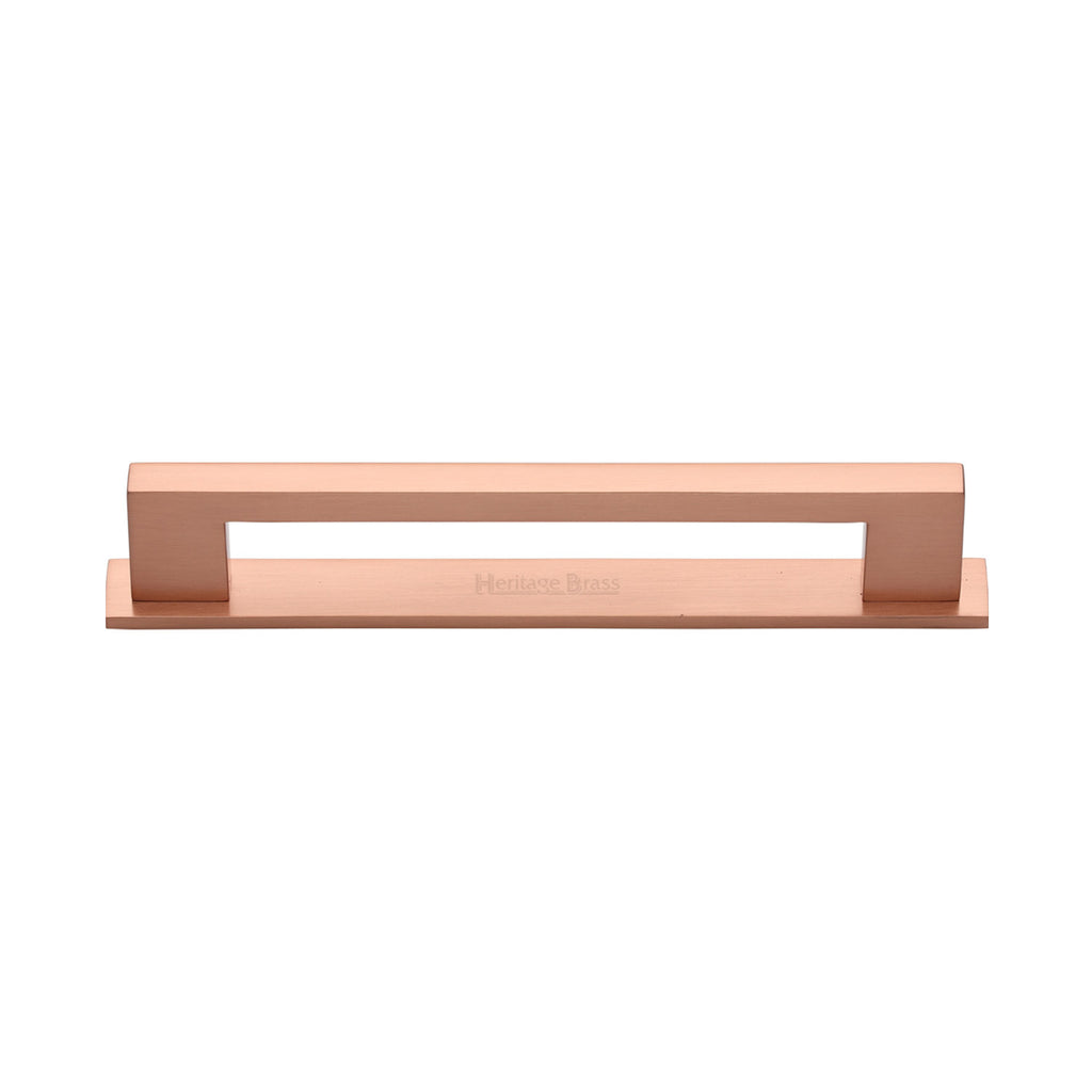 Heritage Brass Cabinet Pull Metro Design with Plate 128mm CTC Satin Rose Gold Finish - PL0337 128-SRG