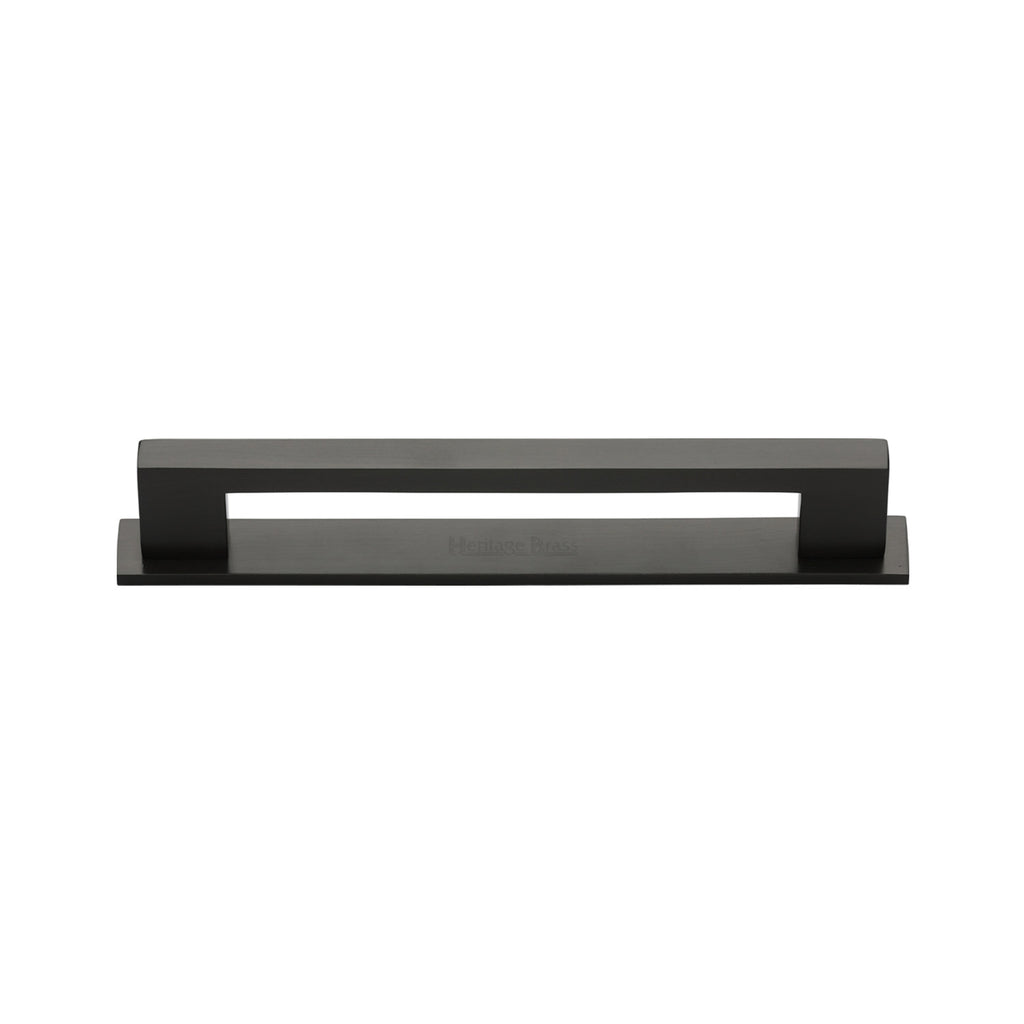 Heritage Brass Cabinet Pull Metro Design with Plate 96mm CTC Matt Bronze Finish - PL0337 96-MB
