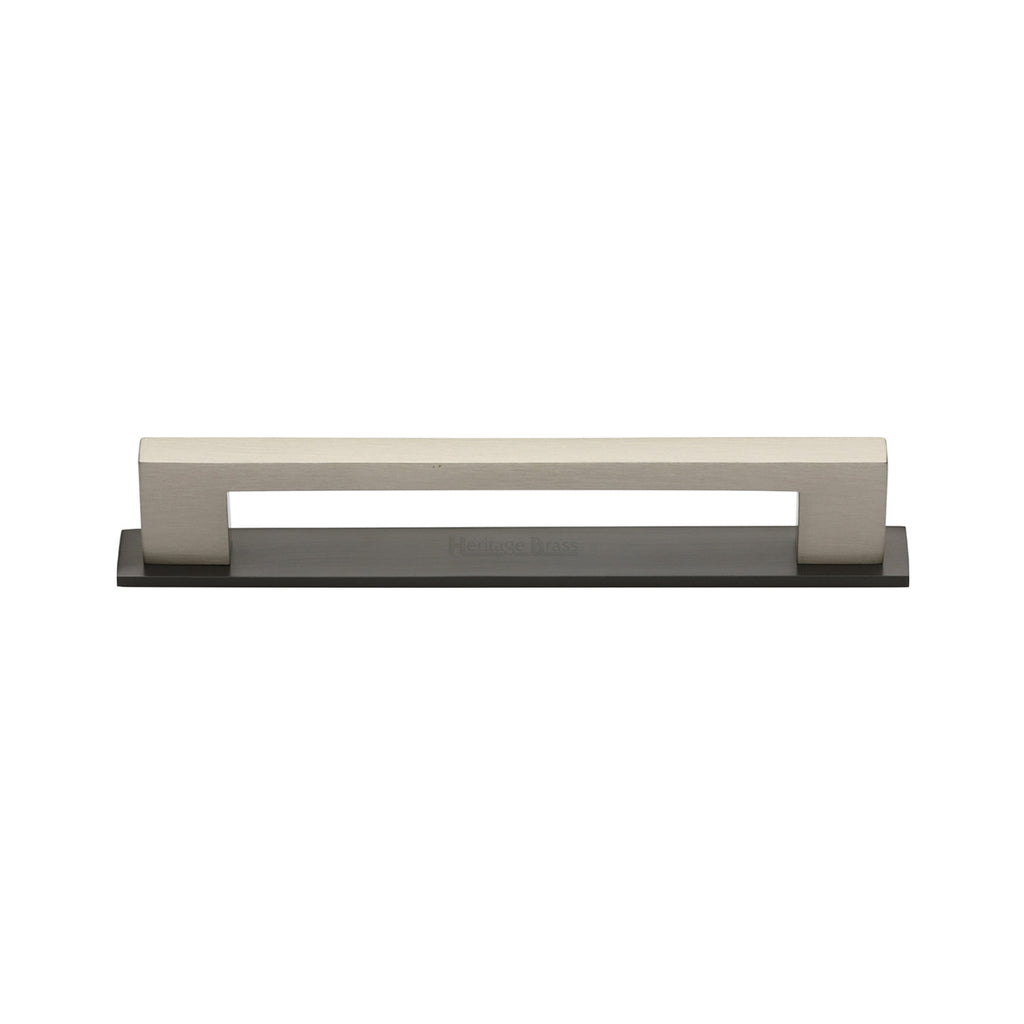 Heritage Brass Cabinet Pull Metro Design with Plate 96mm CTC Matt Bronze/Satin Nickel Finish - PL0337 96-BSN