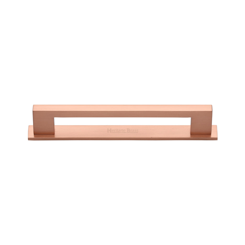 Heritage Brass Cabinet Pull Metro Design with Plate 96mm CTC Satin Rose Gold Finish - PL0337 96-SRG