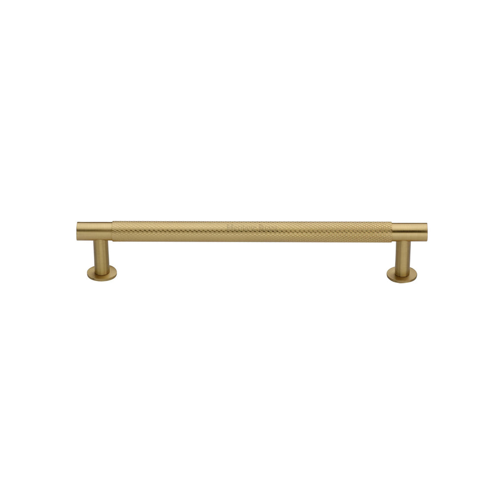 Heritage Brass Cabinet Pull Partial Knurled Design with 16mm Rose 128mm CTC Satin Brass finish - V4462 128-SB