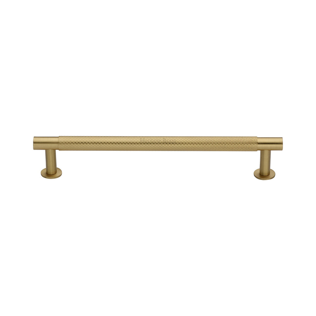 Heritage Brass Cabinet Pull Partial Knurled Design with 16mm Rose 160mm CTC Satin Brass finish - V4462 160-SB