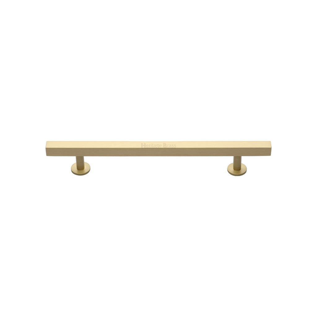 Heritage Brass Cabinet Pull Square Design with Footings 128mm CTC Satin Brass finish - C4760 128-SB