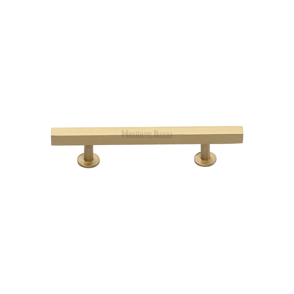 Heritage Brass Cabinet Pull Square Design with Footings 96mm CTC Satin Brass finish - C4760 96-SB
