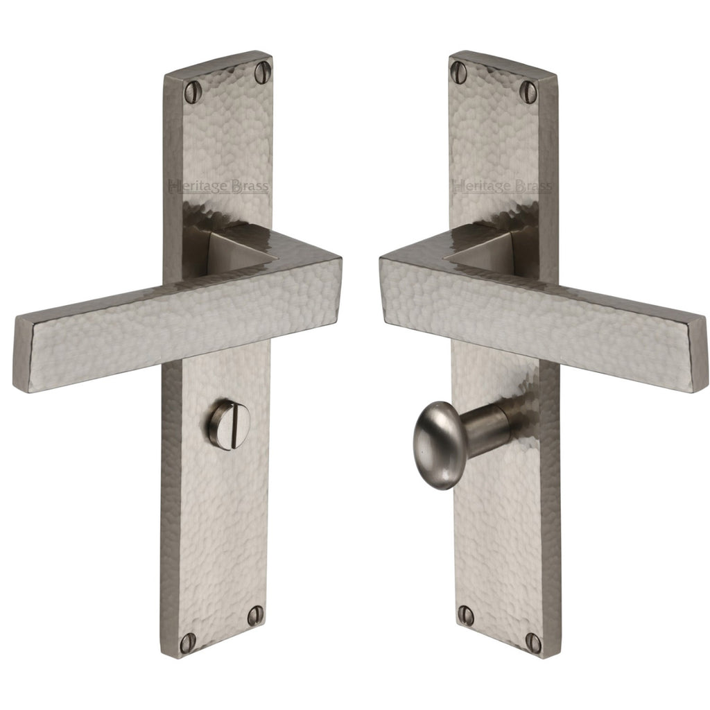 Heritage Brass Delta Hammered Bathroom Set Door Handle on 200mm Plate Satin Nickel finish - VTH3330-SN