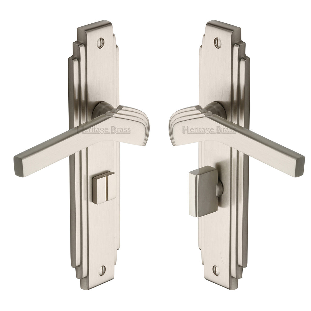 Heritage Brass Door Handle Bathroom Set Tiffany Design Satin Nickel Finish - TIF5230-SN