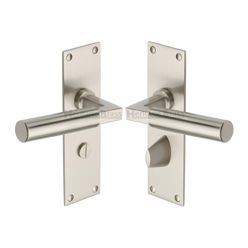 Heritage Brass Door Handle for Bathroom Bauhaus Design Satin Nickel finish - BAU7330-SN