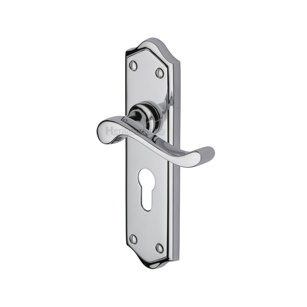 Heritage Brass Door Handle for Euro Profile Plate Buckingham Design Polished Chrome finish - W4248-PC