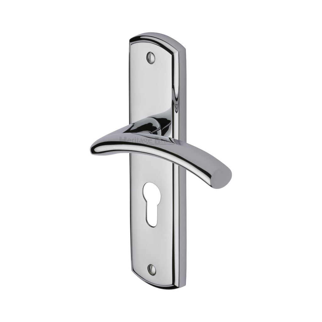 Heritage Brass Door Handle for Euro Profile Plate Centaur Design Polished Chrome finish - CEN1048-PC