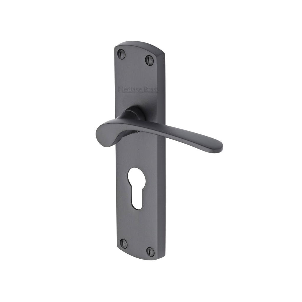 Heritage Brass Door Handle for Euro Profile Plate Diplomat Design Matt Black finish