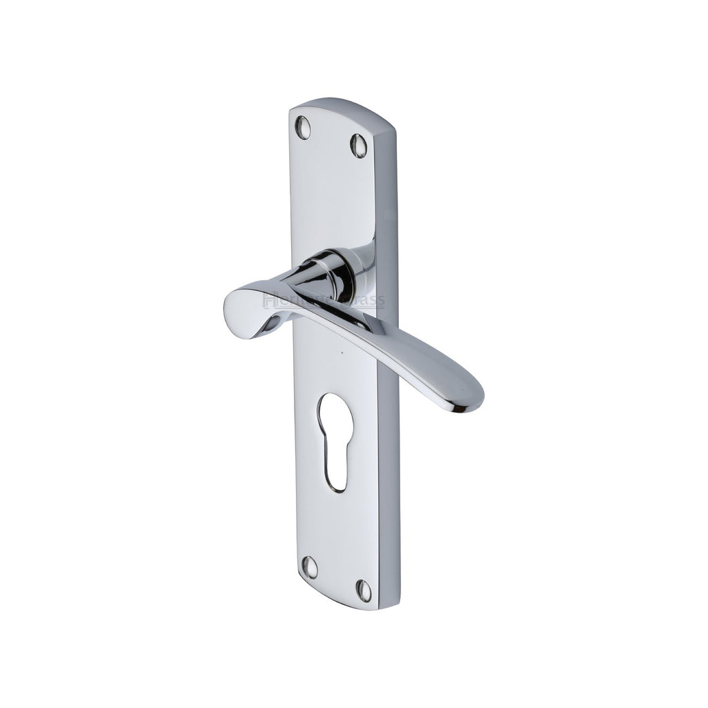 Heritage Brass Door Handle for Euro Profile Plate Diplomat Design Polished Chrome finish