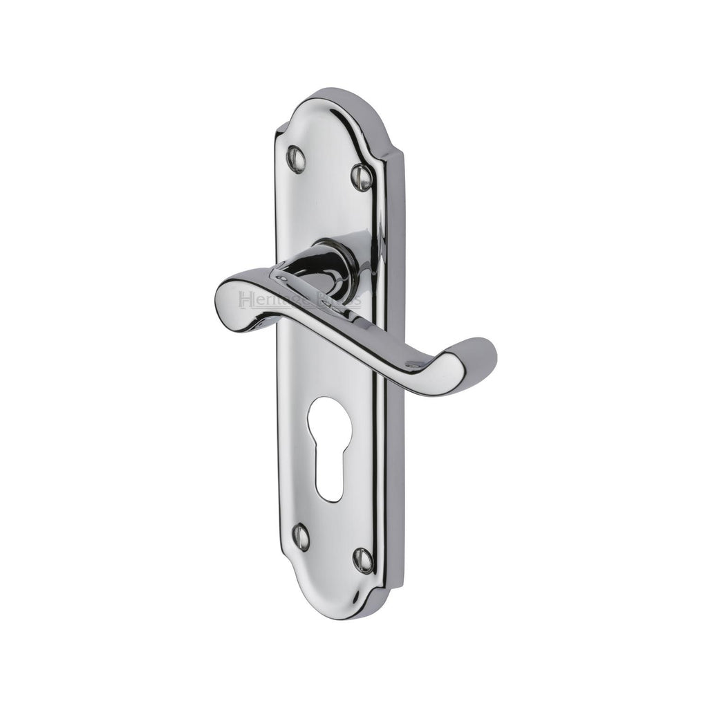 Heritage Brass Door Handle for Euro Profile Plate Meridian Design Polished Chrome finish - V327.48-PC