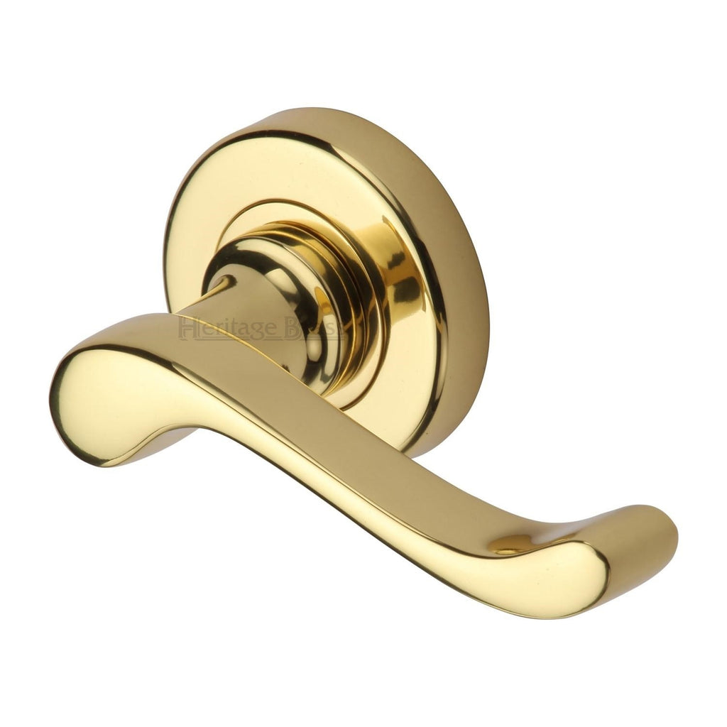 Heritage Brass Door Handle Lever Latch on 53mm Round Rose Bedford Design Polished Brass finish - V3010-PB