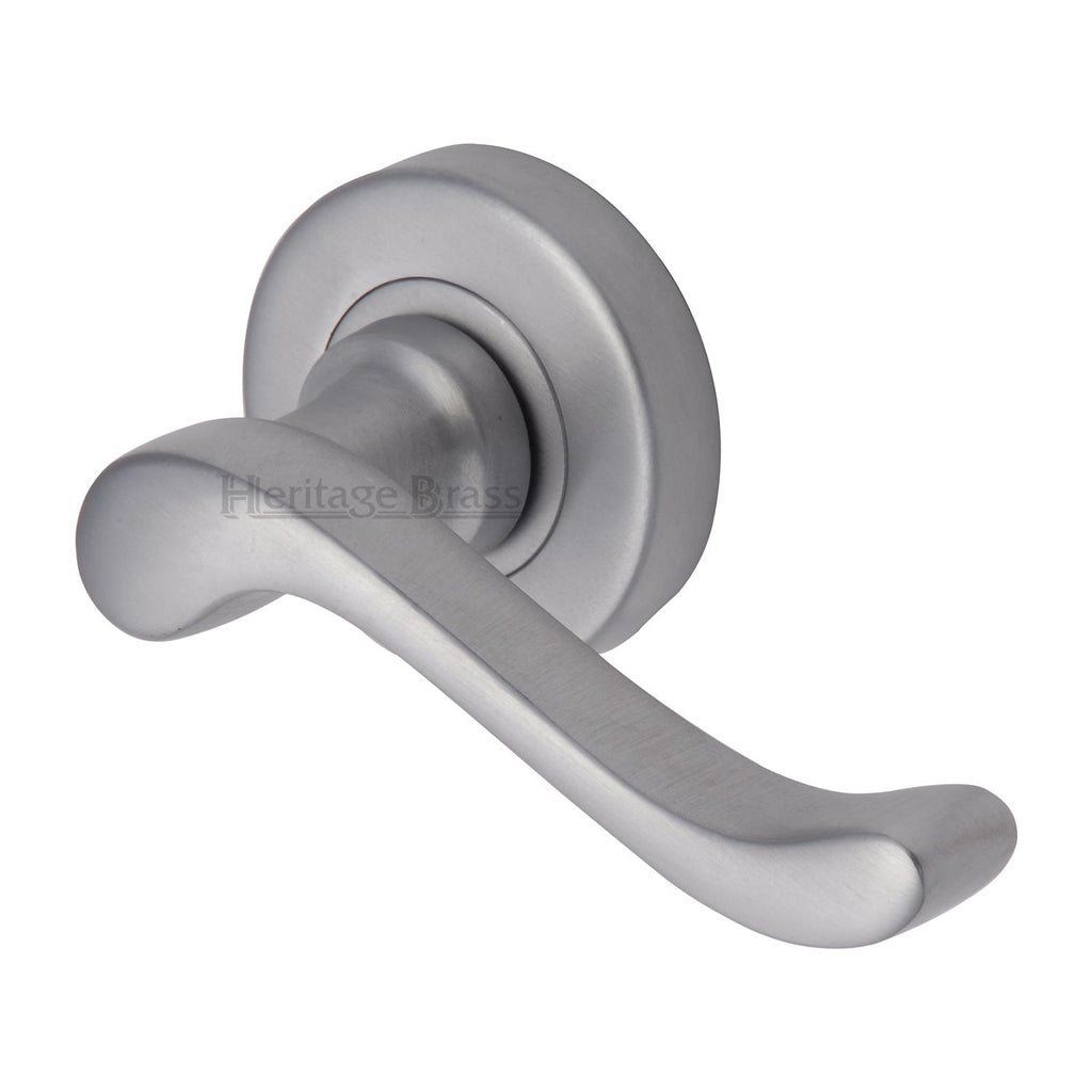Heritage Brass Door Handle Lever Latch on 53mm Round Rose Bedford Design Satin Chrome Finish - V3010-SC