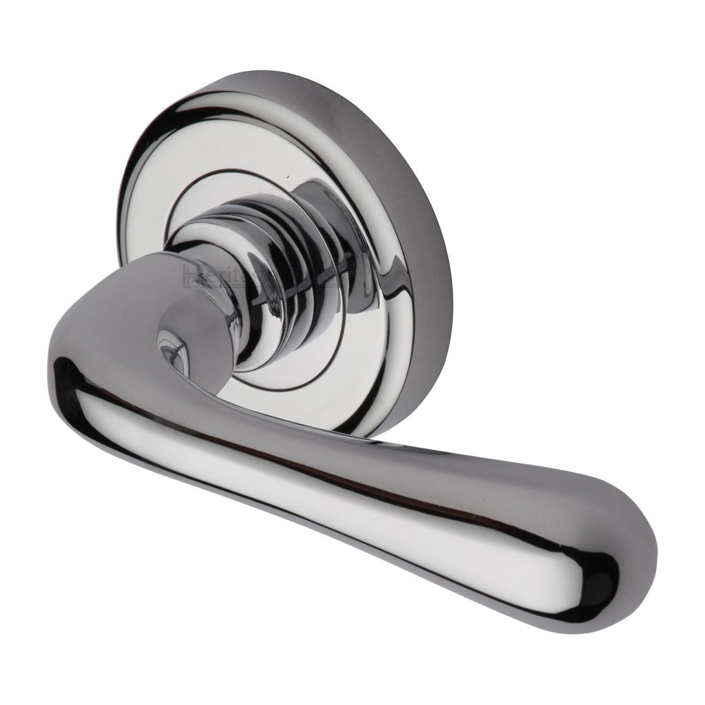 Heritage Brass Door Handle Lever Latch on Round Rose Charlbury Design Polished Chrome finish - V3020-PC