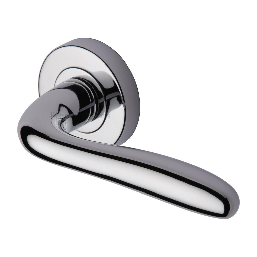 Heritage Brass Door Handle Lever Latch on Round Rose Columbus Design Polished Chrome finish - COL1762-PC