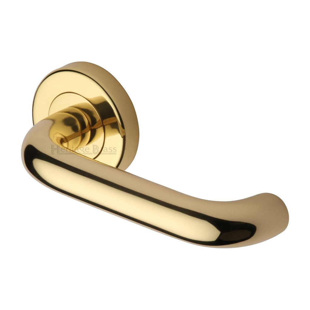 Heritage Brass Door Handle Lever Latch on Round Rose Harmony Design Polished Brass finish - V3090-PB