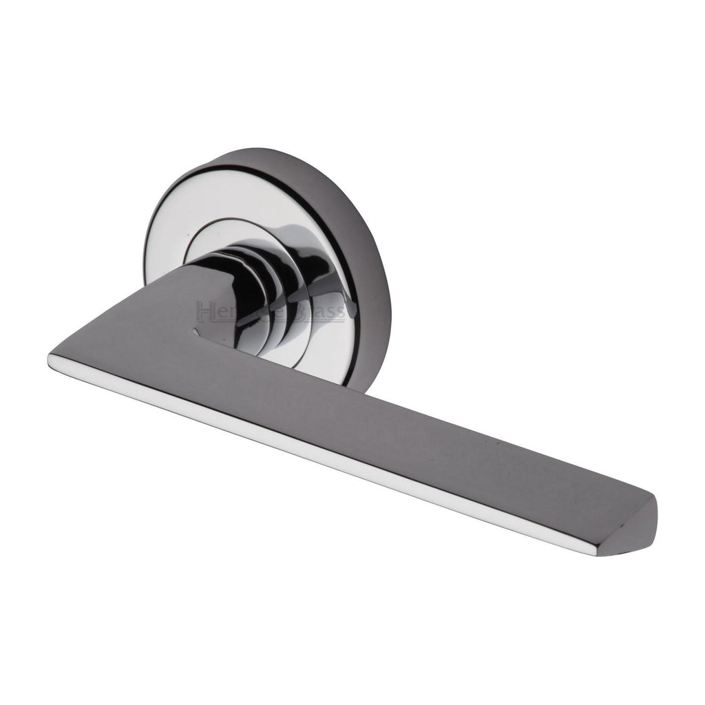 Heritage Brass Door Handle Lever Latch on Round Rose Pyramid Design Polished Chrome finish - PYD3535-PC