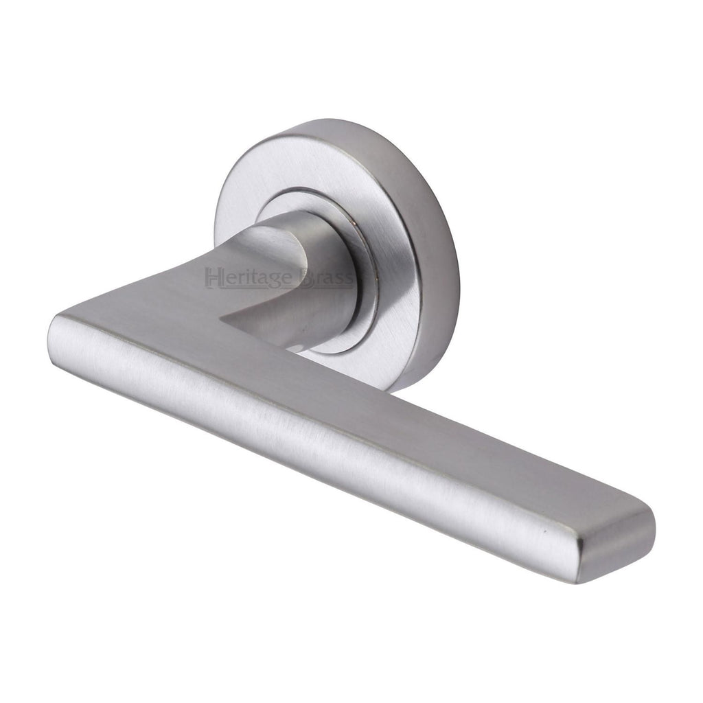 Heritage Brass Door Handle Lever Latch on Round Rose Trident Design Satin Chrome finish - TRI1352-SC