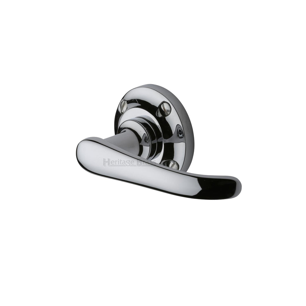 Heritage Brass Door Handle Lever Latch on Round Rose Windsor Design Polished Chrome finish - V720-PC