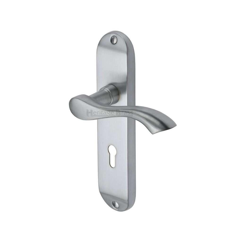 Heritage Brass Door Handle Lever Lock Algarve Design Satin Chrome finish - MM924-SC