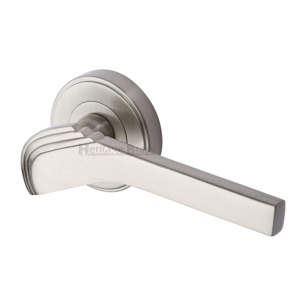 Heritage Brass Door Handle Lever on Rose Tiffany Design Satin Nickel Finish - TIF1926-SN