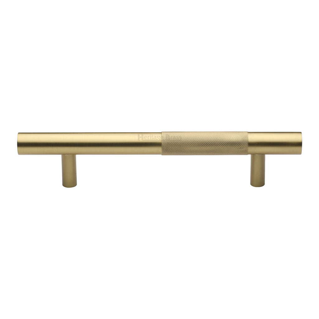 Heritage Brass Door Pull Handle Bar Knurled Design 305mm Satin Brass Finish