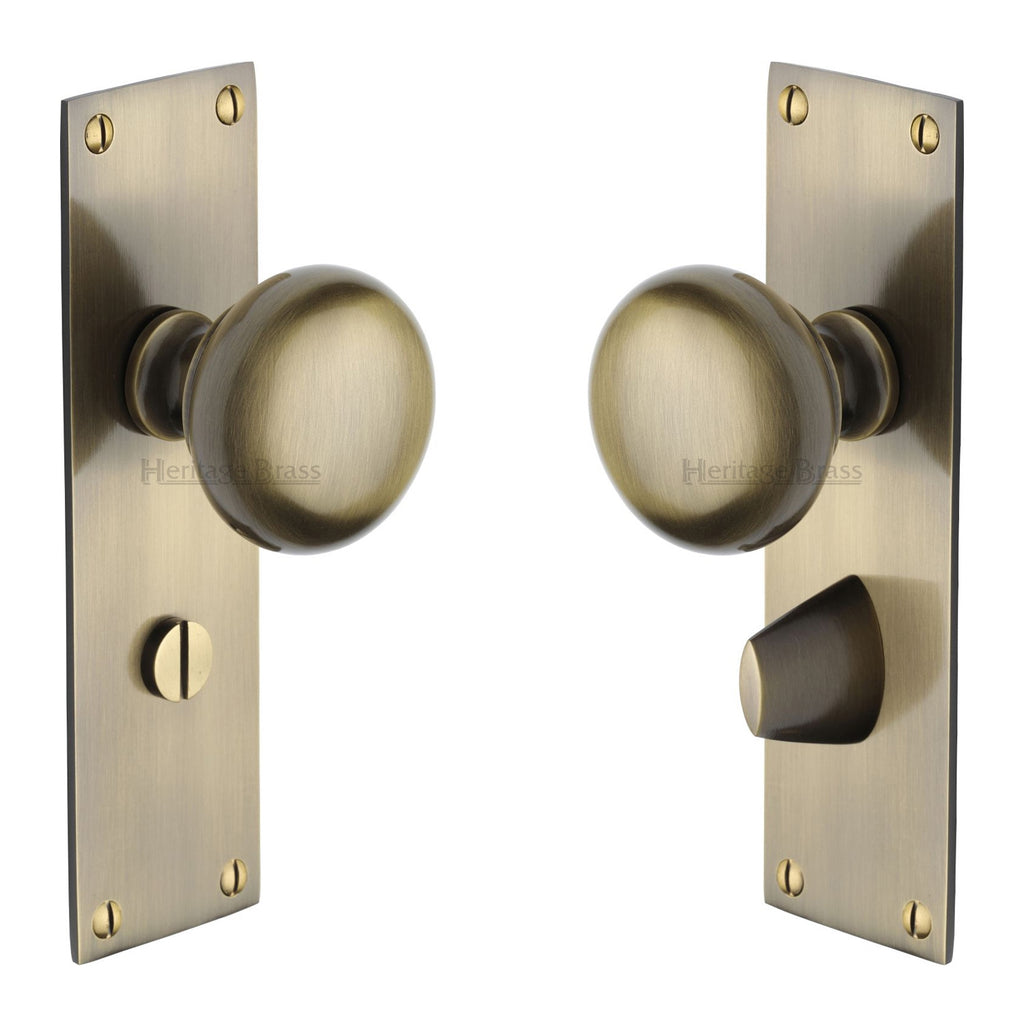 Heritage Brass Mortice Knob on Bathroom Plate Balmoral Design Antique finish - BAL8530-AT