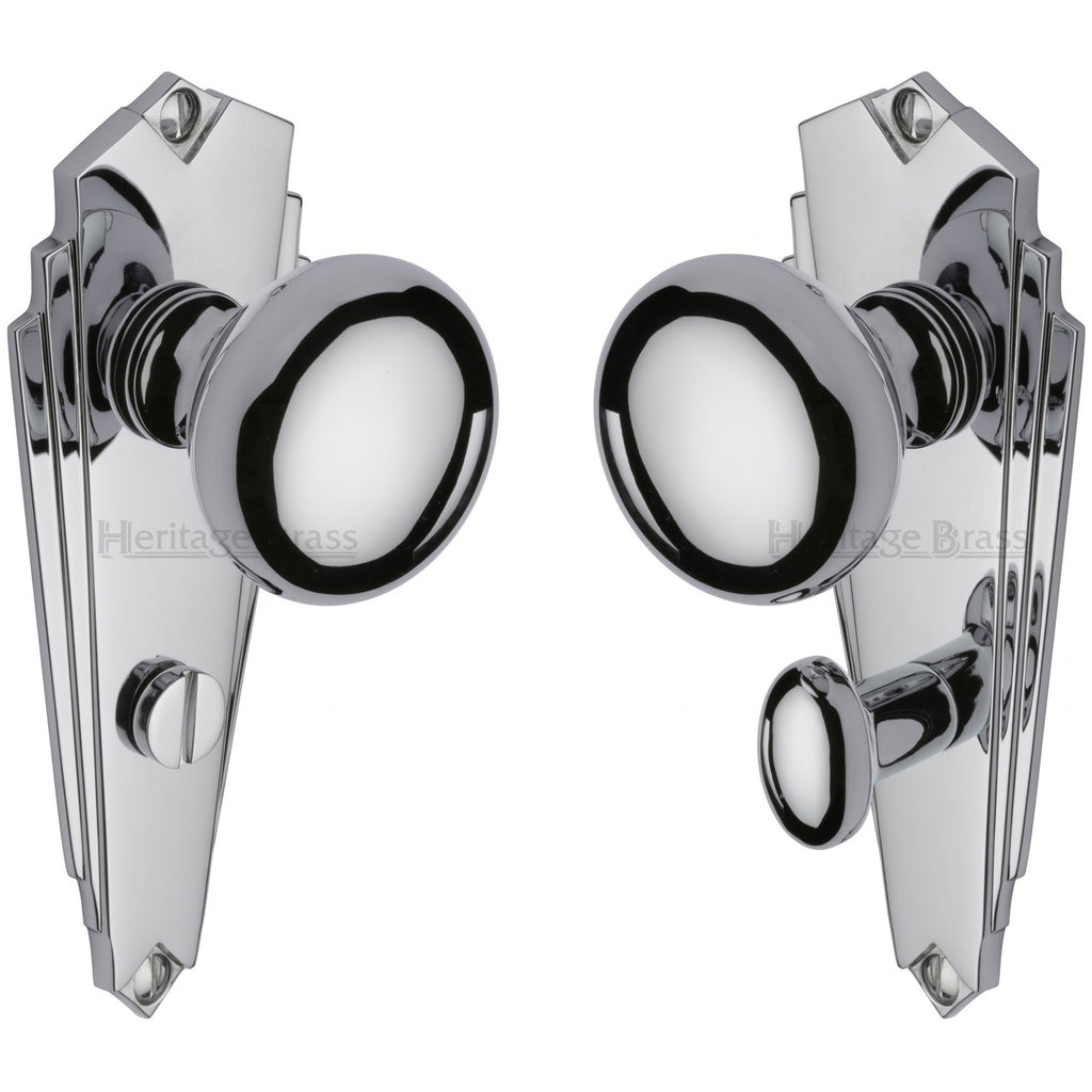 Heritage Brass Mortice Knob on Bathroom Plate Broadway Design Polished Chrome finish - BR1830-PC