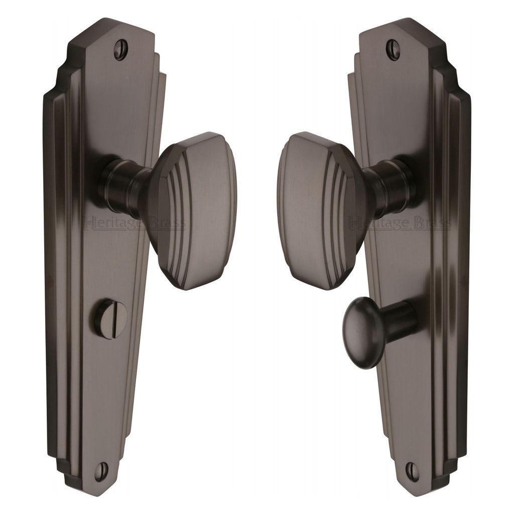 Heritage Brass Mortice Knob on Bathroom Plate Charlston Design Matt Bronze finish - CHA1930-MB