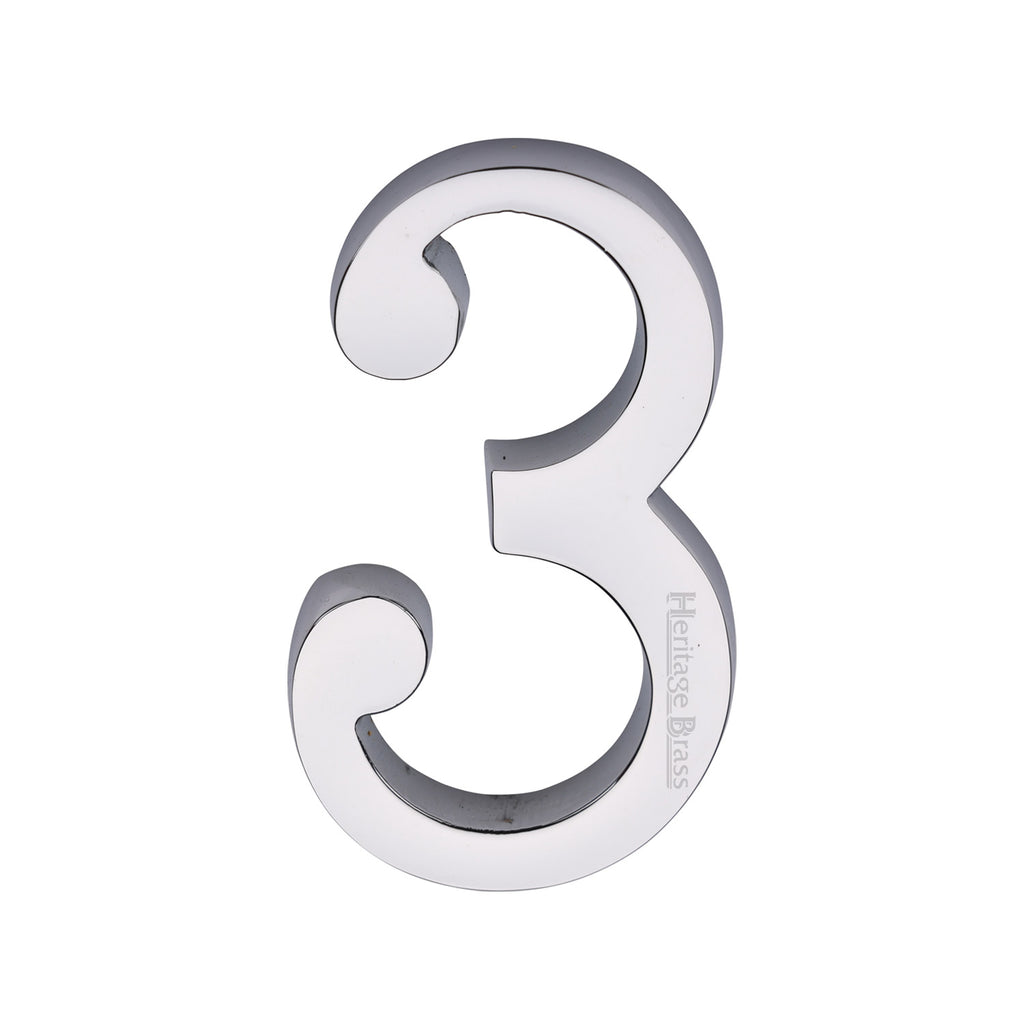 Heritage Brass Numeral 3 Concealed Fix 76mm (3") Polished Chrome finish - C1564 3-PC