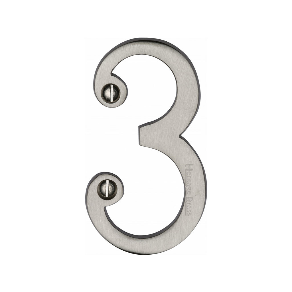 Heritage Brass Numeral 3 Face Fix 76mm (3") Satin Nickel finish - C1560 3-SN