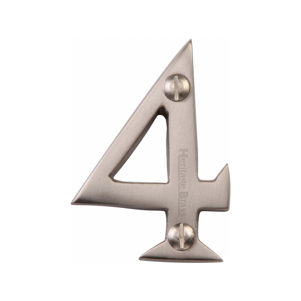 Heritage Brass Numeral 4 Face Fix 51mm (2") Satin Nickel finish - C1567 4-SN