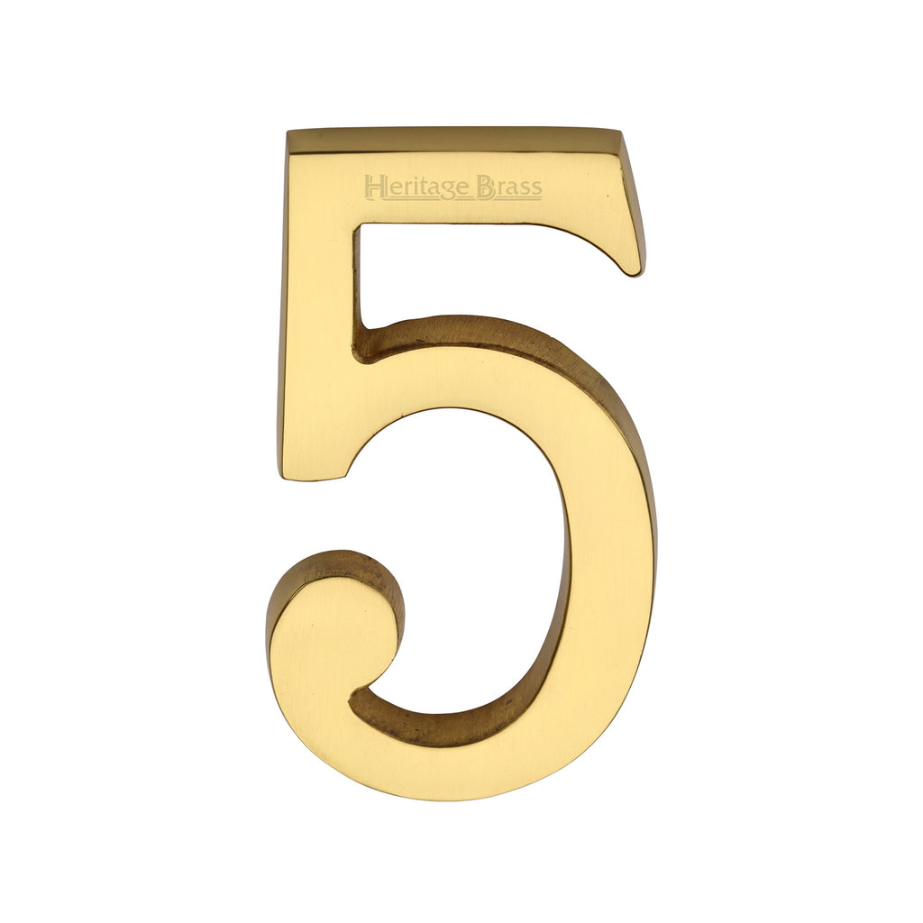 Heritage Brass Numeral 5 Concealed Fix 76mm (3") Unlacquered Brass finish - C1564 5-ULB