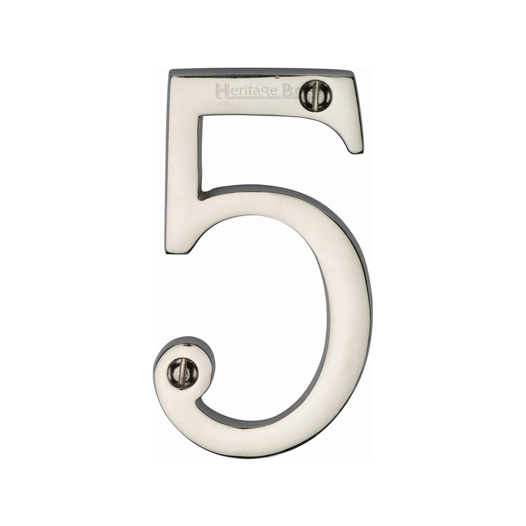 Heritage Brass Numeral 5 Face Fix 76mm (3") Polished Nickel finish - C1560 5-PNF