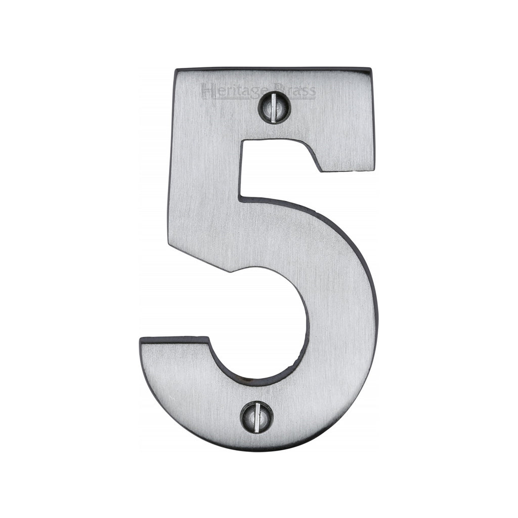 Heritage Brass Numeral 5 Face Fix 76mm (3") Satin Chrome finish - C1566 5-SC
