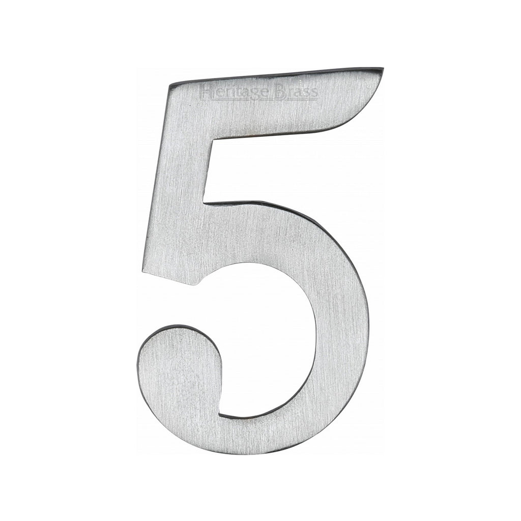 Heritage Brass Numeral 5 Self Adhesive 51mm (2") Satin Chrome finish - C1568 5-SC