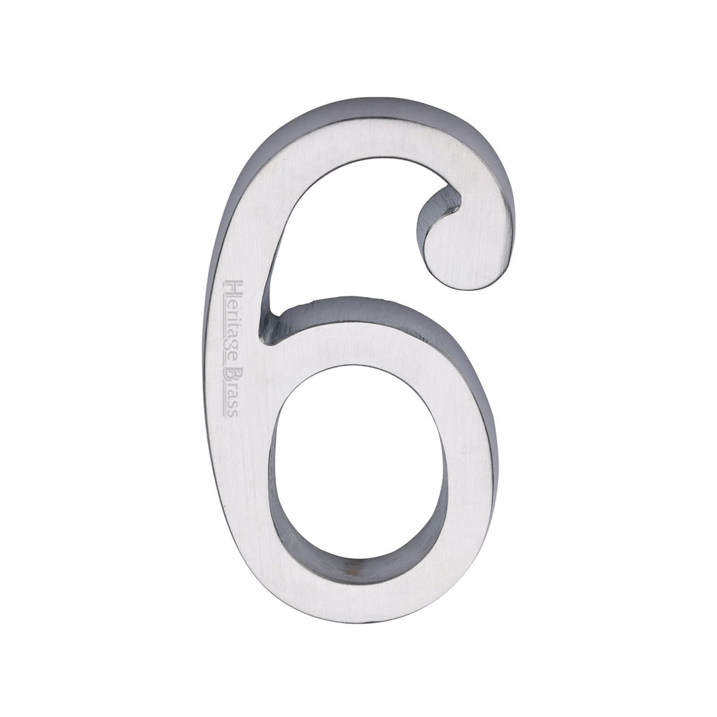 Heritage Brass Numeral 6 Concealed Fix 76mm (3") Satin Chrome finish - C1564 6-SC