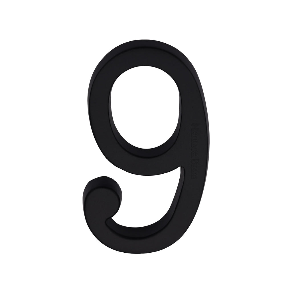 Heritage Brass Numeral 9 Concealed Fix 76mm (3) Matt Black - C1564 9-BKMT