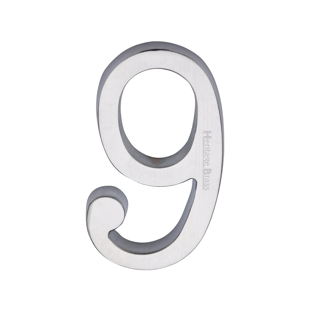 Heritage Brass Numeral 9 Concealed Fix 76mm (3) Satin Chrome finish - C1564 9-SC
