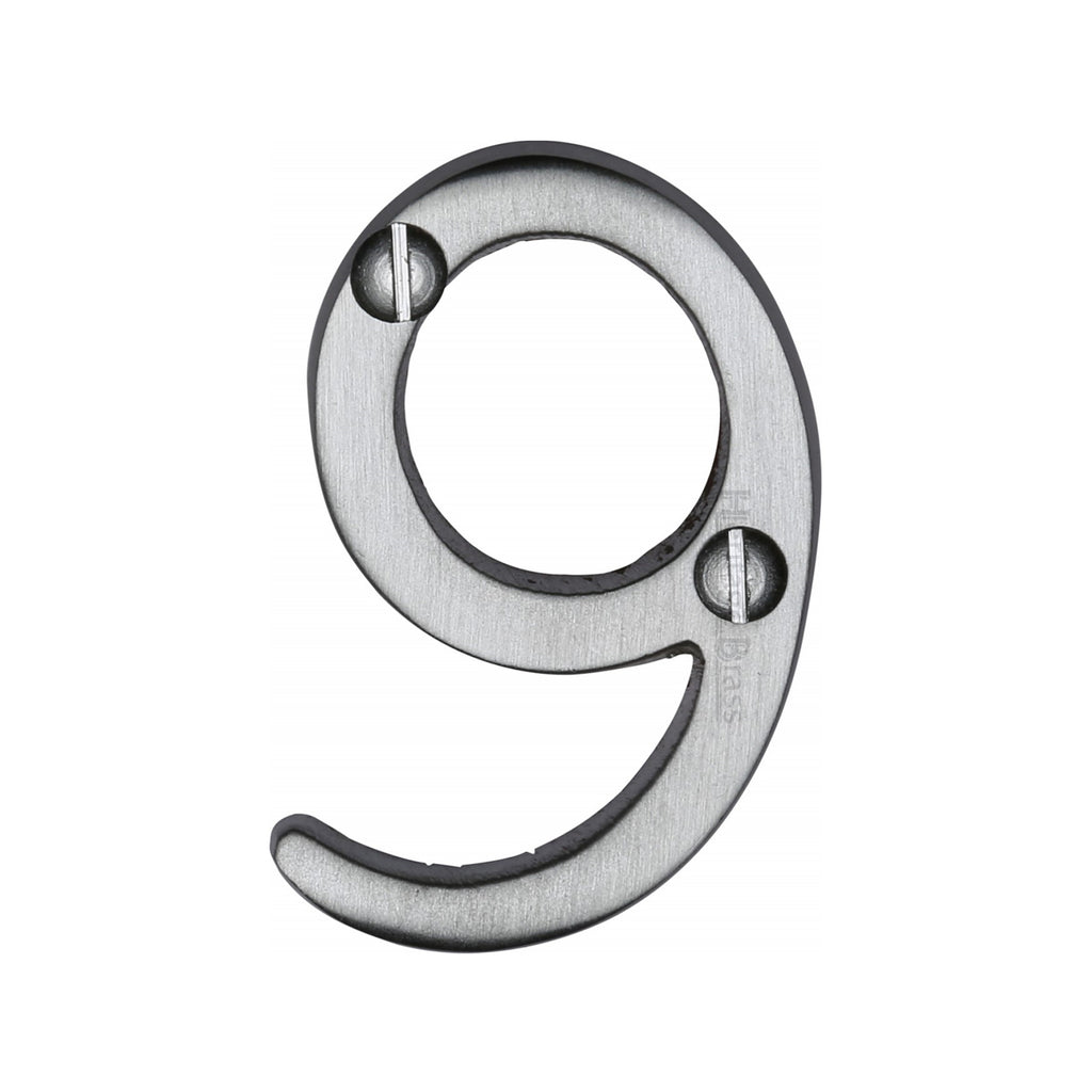 Heritage Brass Numeral 9 Face Fix 51mm (2") Satin Chrome finish - C1567 9-SC