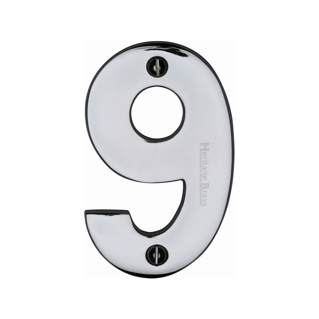 Heritage Brass Numeral 9 Face Fix 76mm (3") Polished Chrome finish - C1566 9-PC