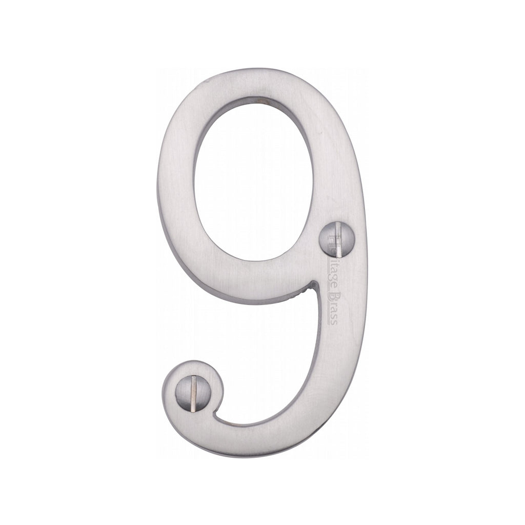 Heritage Brass Numeral 9 Face Fix 76mm (3") Satin Chrome finish - C1560 9-SC