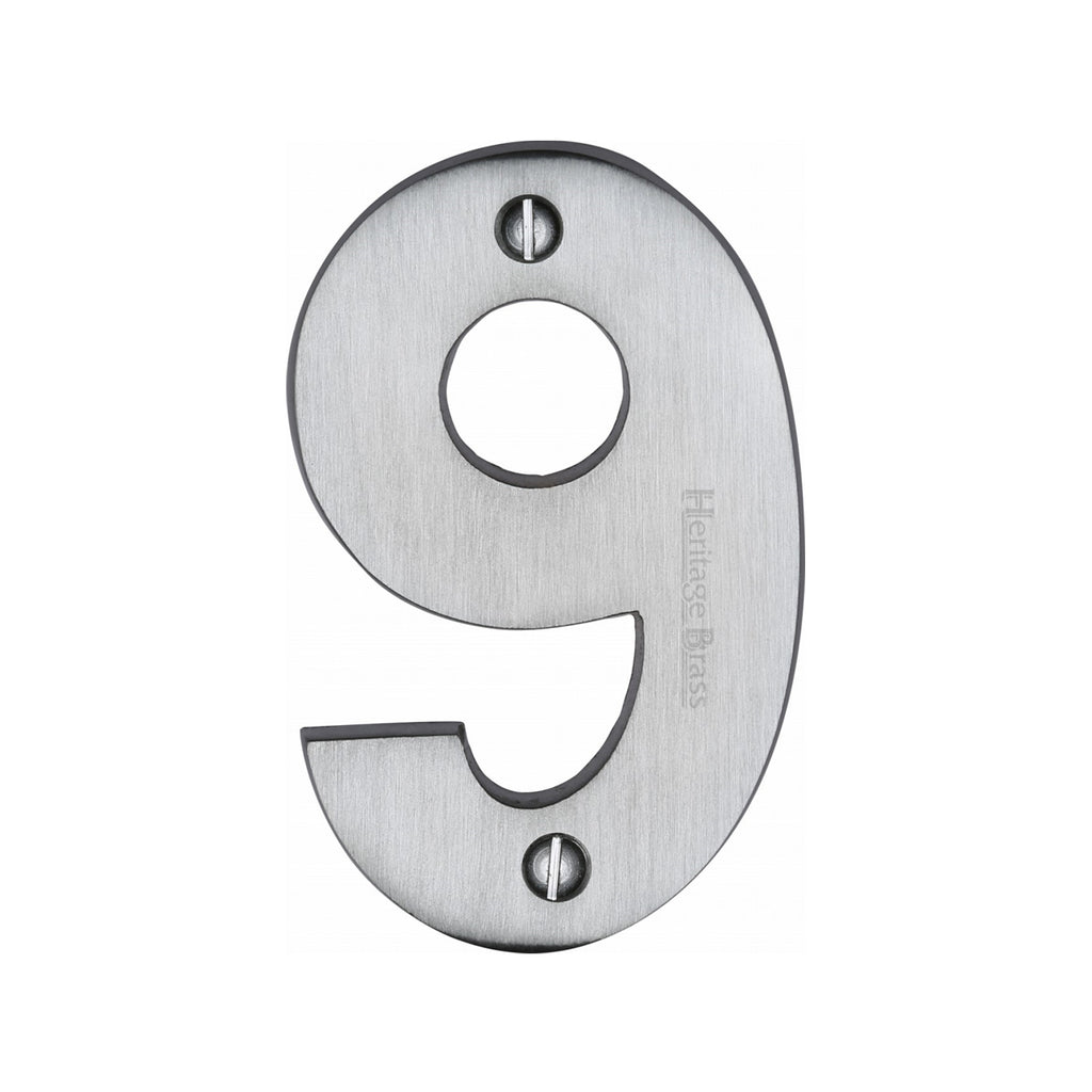 Heritage Brass Numeral 9 Face Fix 76mm (3") Satin Chrome finish - C1566 9-SC