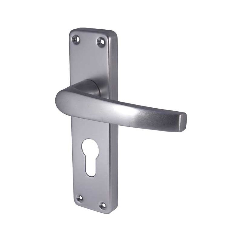 Jedo - Contract Door Handle on Euro Profile Lockplate - Satin Anodised Aluminium - J5601E